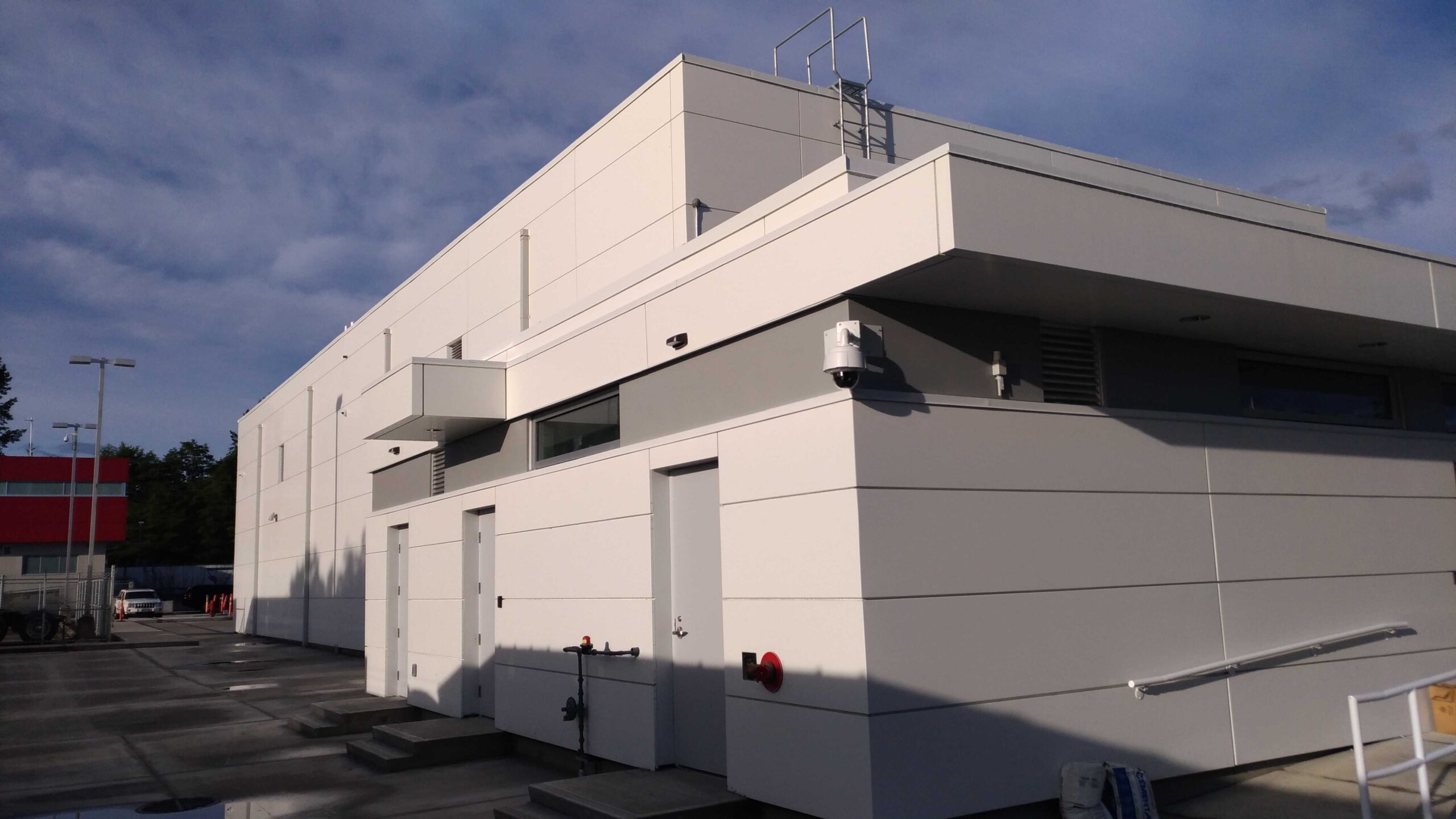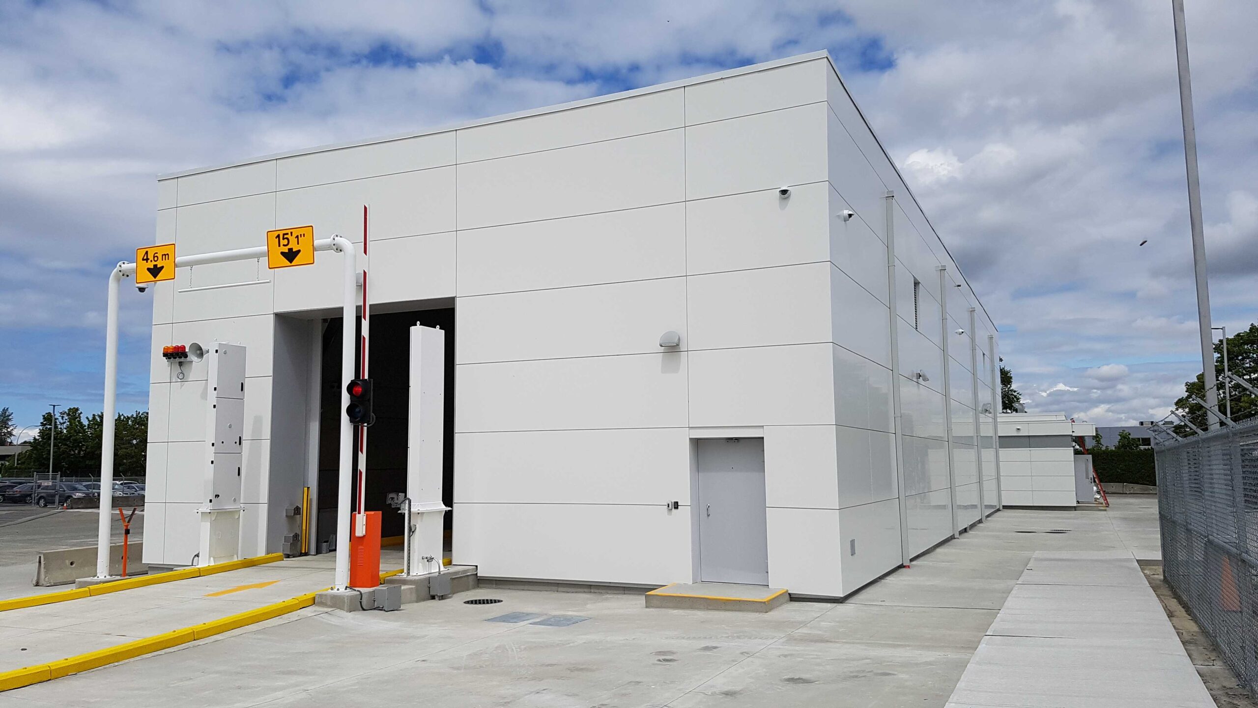 The new FS‐LSI Facility at the Pacific Highway Border Crossing is the first of its kind in Canada. It is designed for expedited scanning of large semi‐trucks and trailers by CBSA. This complex design‐build project features a 19‐foot tall moving x‐ray scanner and modern office space. The radiation‐shielded area housing the scanner required concrete walls up to 1.5 meters thick for radiation containment purposes. Conduit penetrations through the concrete walls needed to be carefully planned and minimized. Utilizing CAD and 3D computer modelling software, Bridge Electric worked closely with Scott Construction and the scanning equipment provider to make sure the electrical systems would integrate with the sophisticated equipment and meet the end user’s needs.