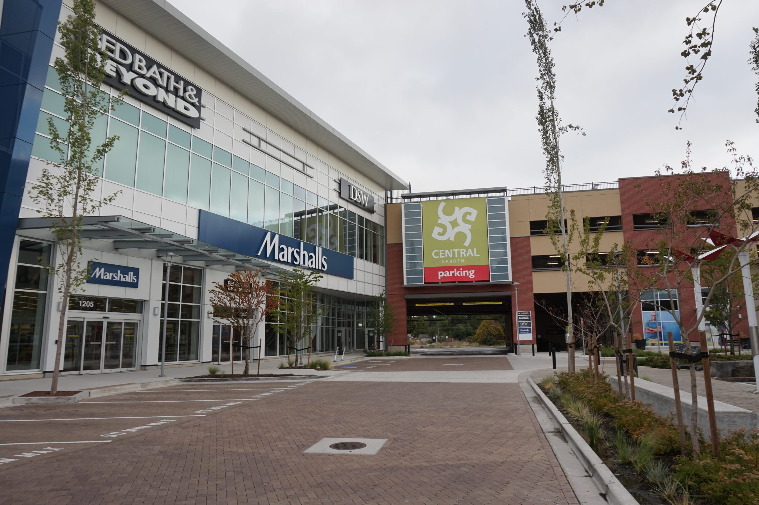 Central at Garden City is an outdoor mall located at the crossroads of Garden City and Alderbridge Way in Richmond, BC.  It has over 50 retail stores throughout the 15 acre site and features a unique two level Walmart Supercentre as its primary anchor tenant.  The mall also has Marshalls, DSW: Designer Shoe Warehouse, and Bed Bath & Beyond as major retailers.  It provides a variety of restaurants, banks and other services along its many pedestrian pathways and plazas.  In addition to its retail space, the mall has the unique feature of including 40,000 sq/ft of green space on the roof of the main parking structure.