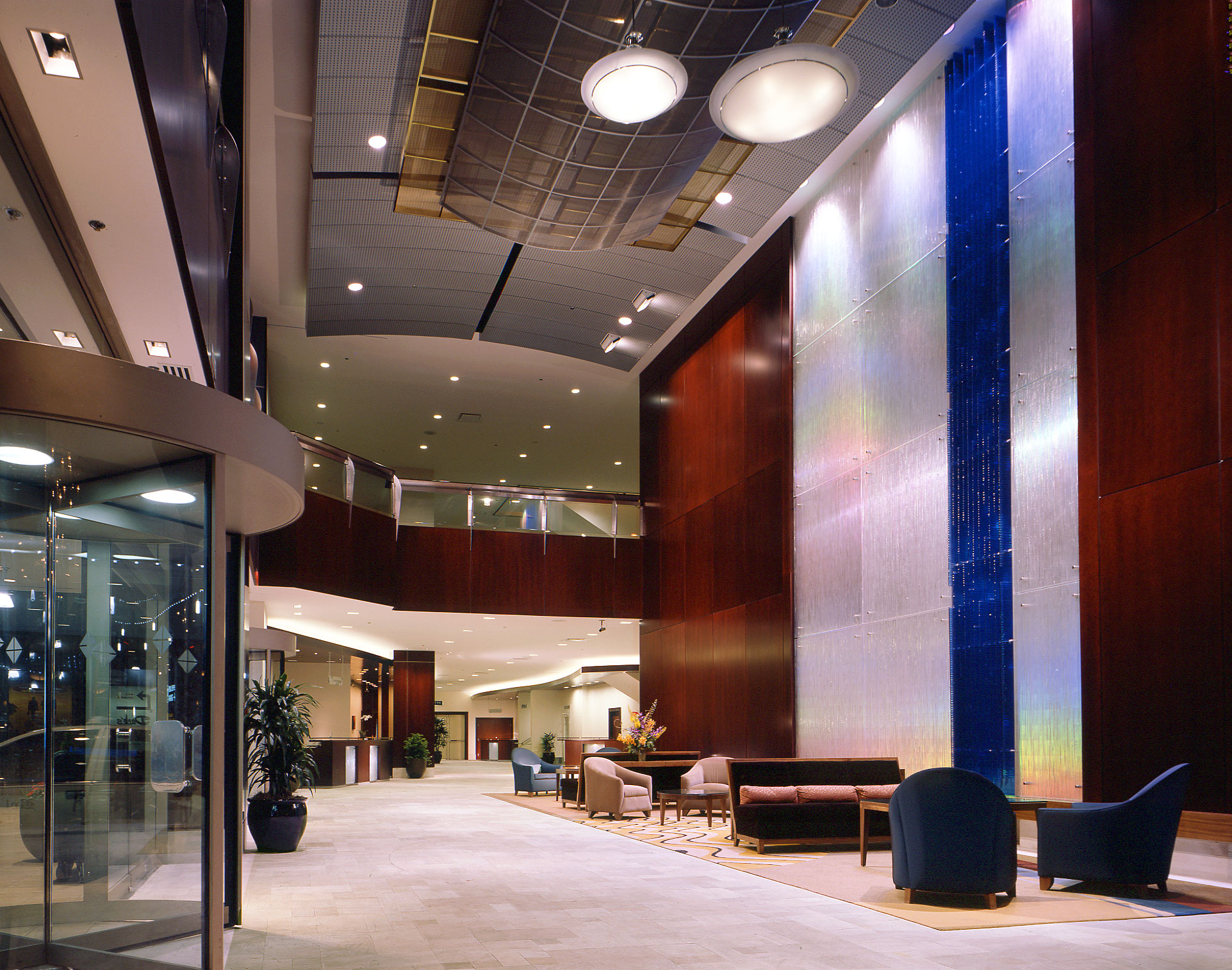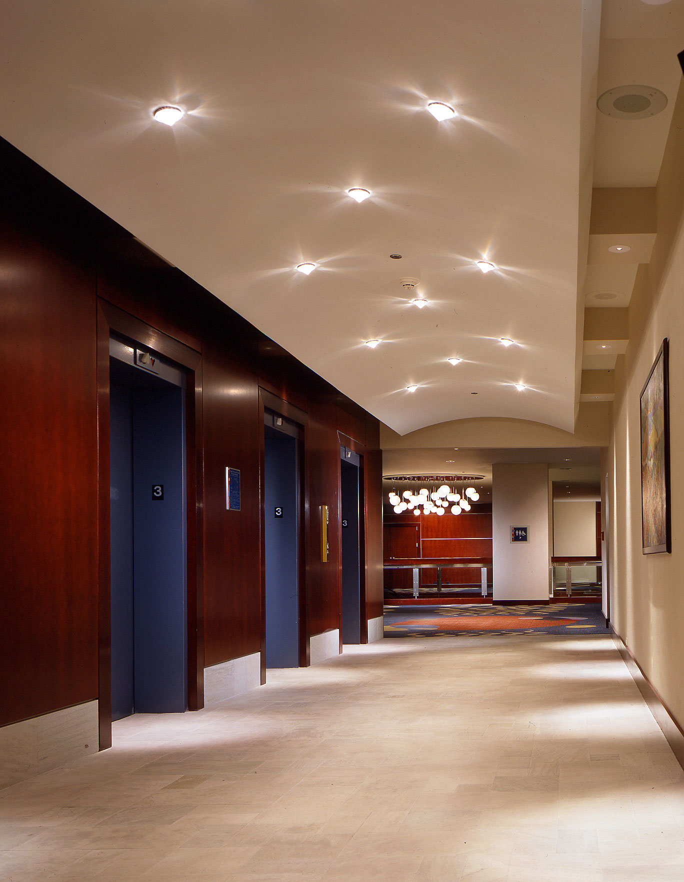 The dominant feature and main challenge of this electrical contract was the lighting design which consisted of 90 different types of specialized light fixtures. This project also had its share of custom light fixtures including wall sconces, decorative track, cold cathode, latest technology LED lamps, chandeliers, and a 26’ high feature wall fixture. To accent the new lighting design, a new electronic dimming system was installed to replace the old manual dimmers. The electronic dimming system consisted of three racks on two levels enabling complete customizable control of the first three levels. Users can now control lighting levels via wall stations, an input programming console, and infrared remotes.