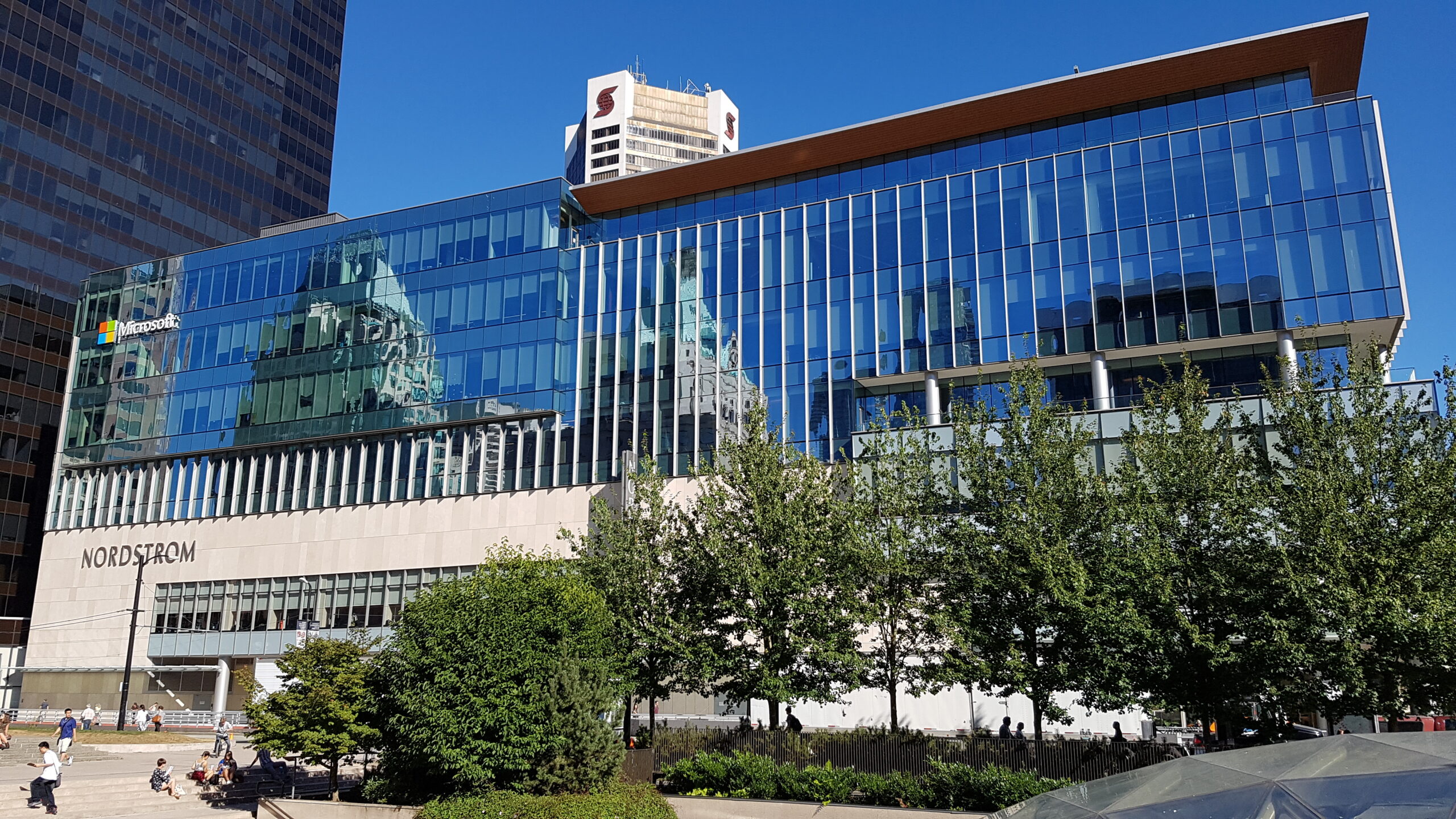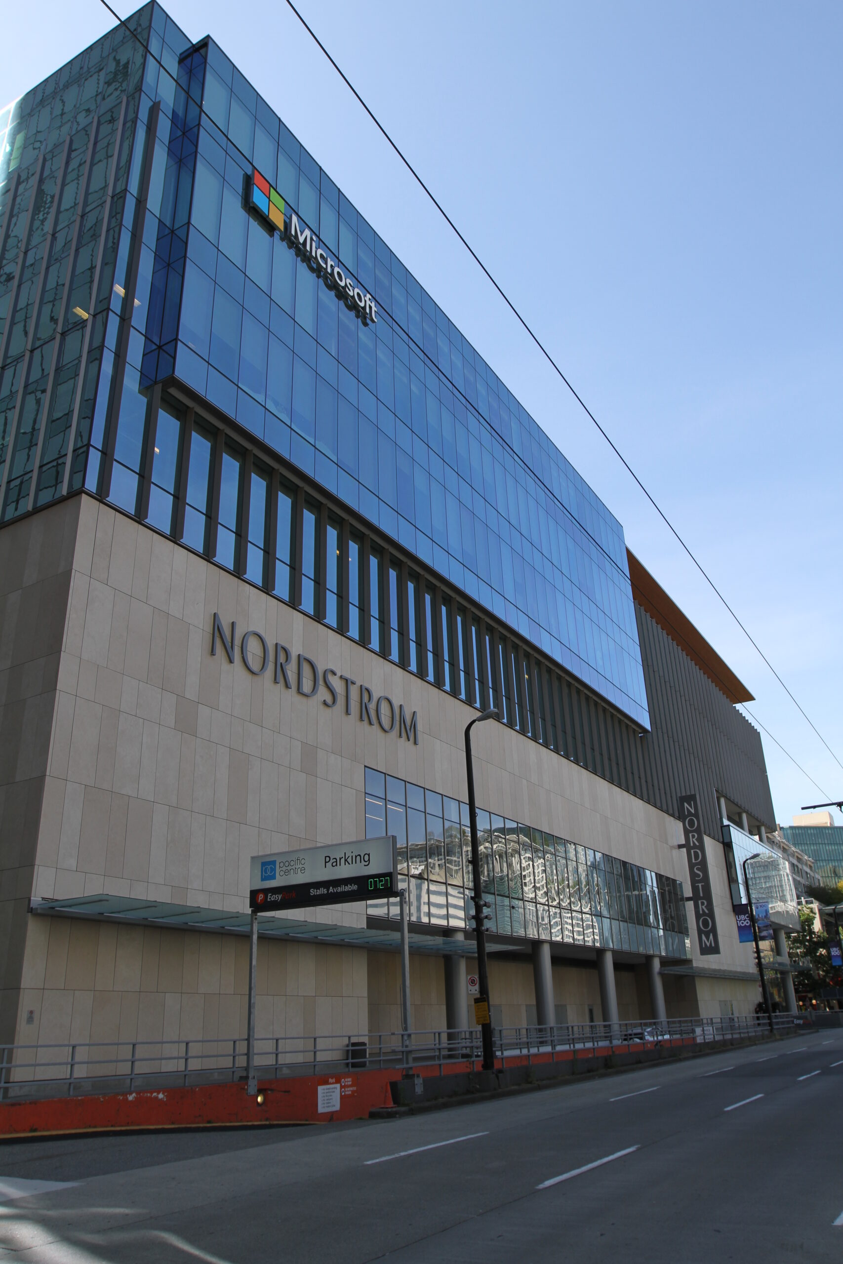 This prominent building in Vancouver’s downtown core is now home to B.C.’s first Nordstrom store, a number of other high-end retailers, and offices occupied by tenants such as Sony and Microsoft.