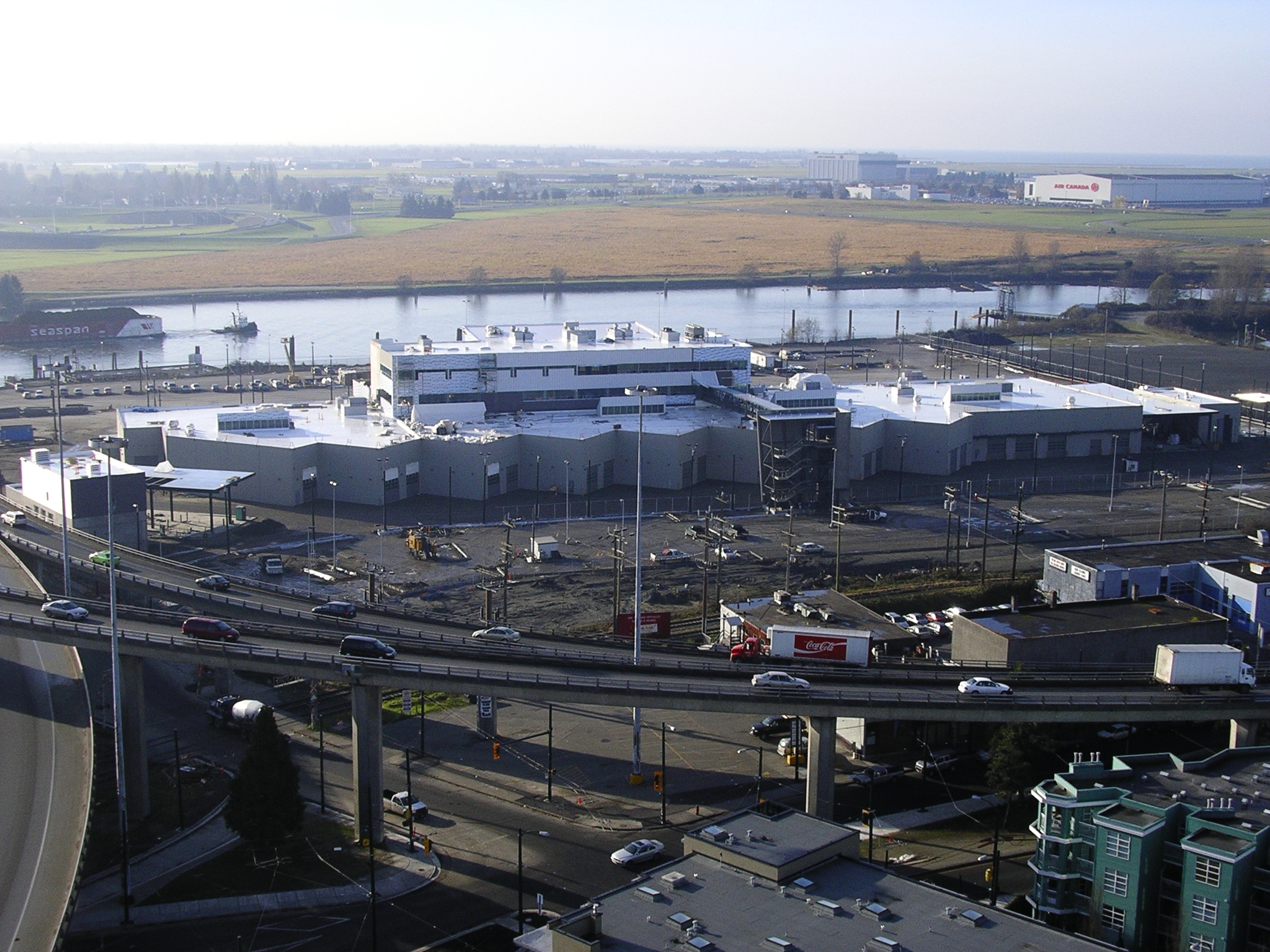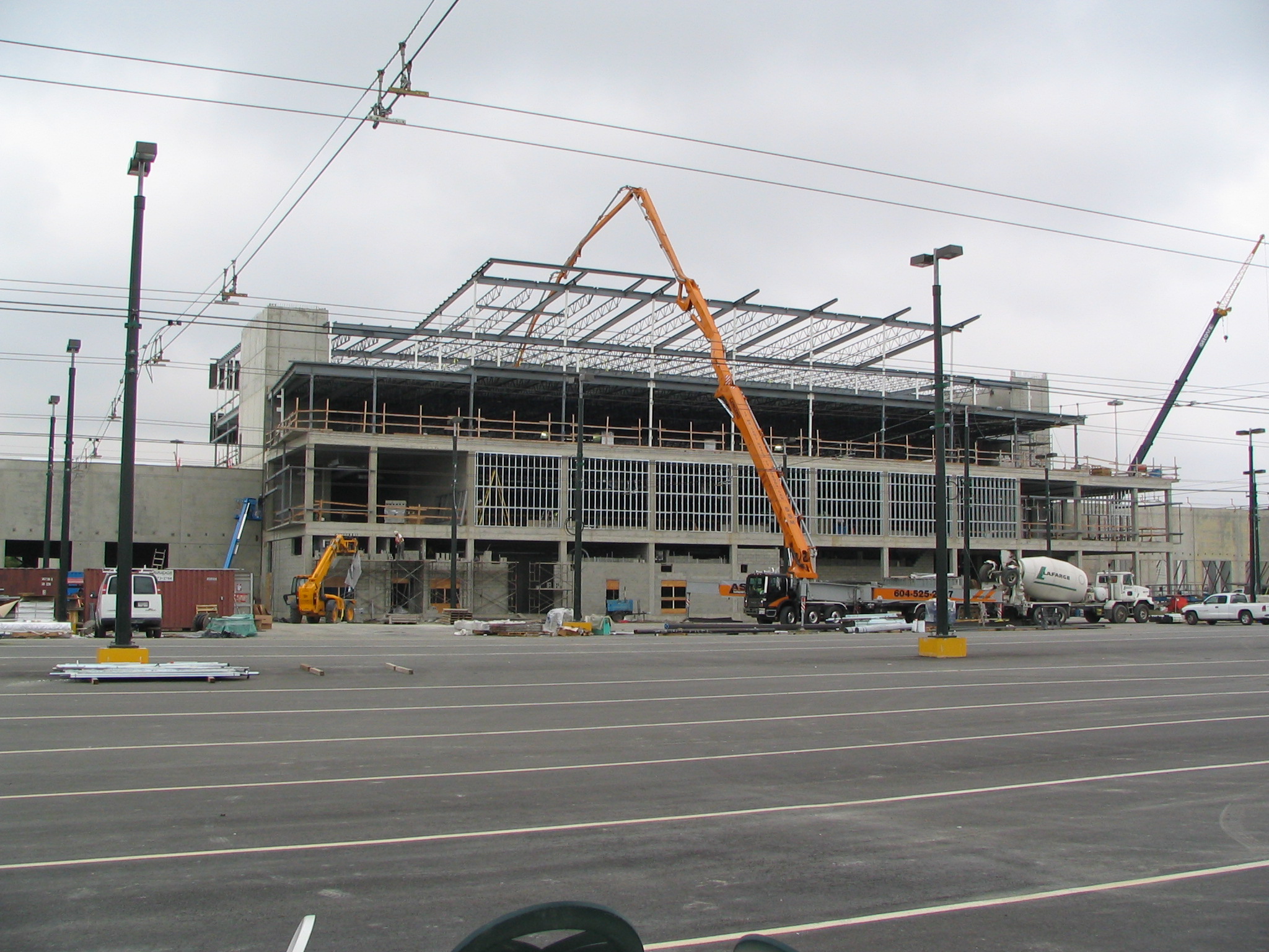 This newly completed facility was designed and constructed as a replacement facility to the Oakridge Transit Centre located at 41st Ave and Oak Street. The facility features space for 400 total buses, including 172 diesels, 188 standard trolleys and 40 articulated trolleys. The office tower provides employee training spaces and a publicly accessible cafeteria via the pedestrian bridge.