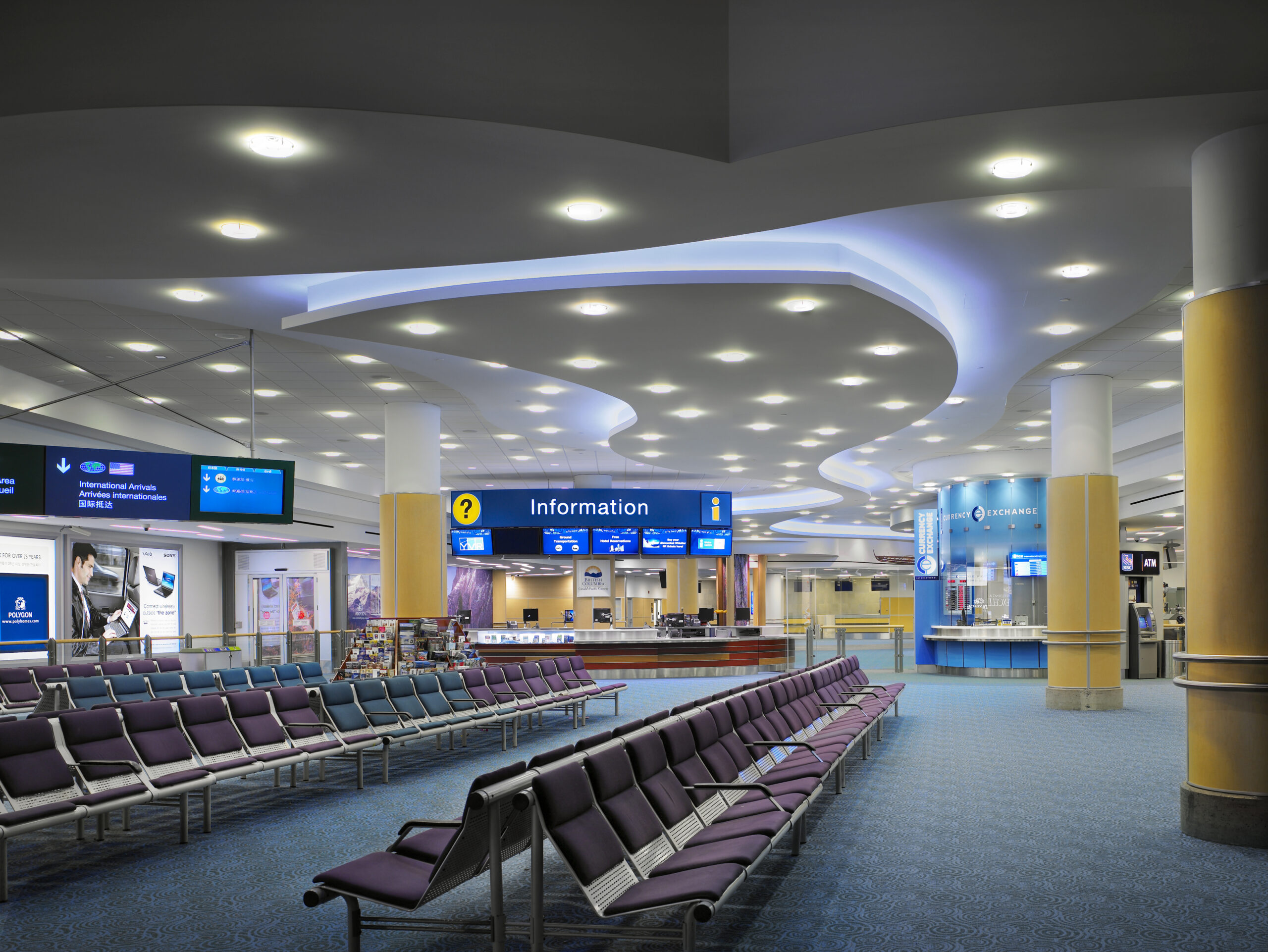 The new International Arrivals Hall was born of the need to provide a visually welcoming space with 24 hour passenger assistance.